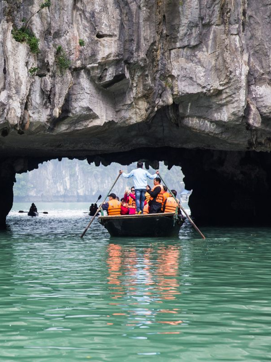 Activité principale : Montez à bord d'un petit bateau en bambou (thuyền nan) ou d'un kayak pour une traversée fascinante à travers une arche rocheuse basse. Ce passage mène à un lac intérieur d'une tranquillité absolue, niché au cœur de la montagne.
