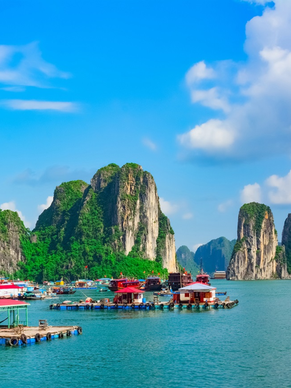 La baie d'Halong est une merveille naturelle splendide du Vietnam, caractérisée par ses montagnes karstiques imposantes et ses eaux cristallines. Vous aurez l'opportunité de faire des croisières à travers la baie, d'admirer des paysages époustouflants et d'explorer des grottes mystérieuses. C'est une destination idéale pour se détendre et profiter de la beauté naturelle exceptionnelle du pays.