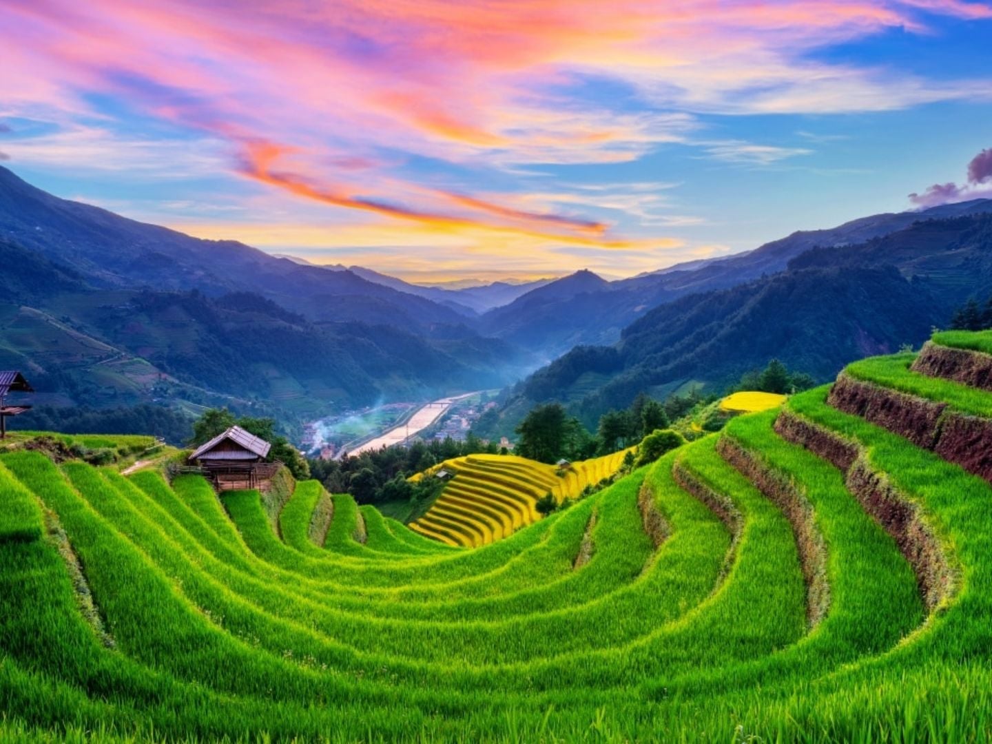 7:00 - 7:30: Have breakfast at hotel. After breakfast, we leave the hotel and start trekking. After 4km on the main road, we start going down to the valley by the small trails through the terrace rice fields to get to Y Linh Ho hamlet, and from here to the Black H'mong village - Lao Chai village (Black H'mong is one of the biggest minority groups in the Sapa). After that, you will continue your trekking along Muong Hoa stream, paddy field to Ta Van village, visit and understand about "Zay" ethnic people. You will see houses of The Zay people which are built of wood and bamboo with a clay floor.